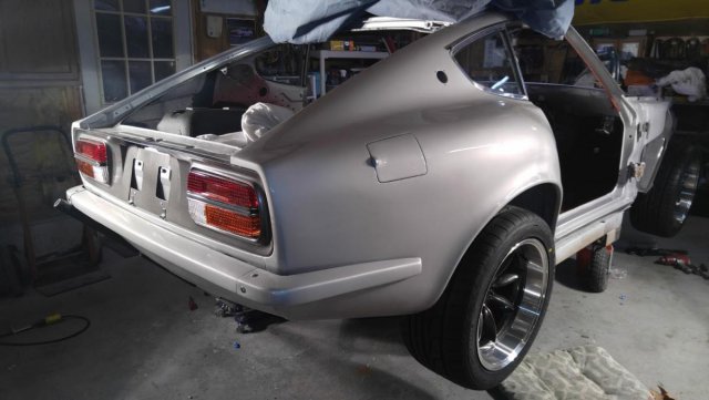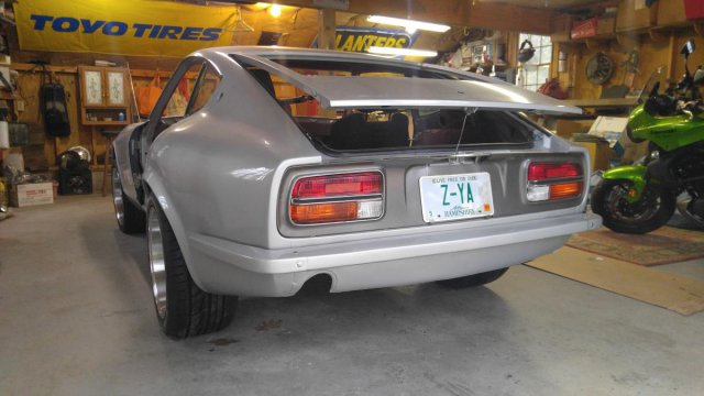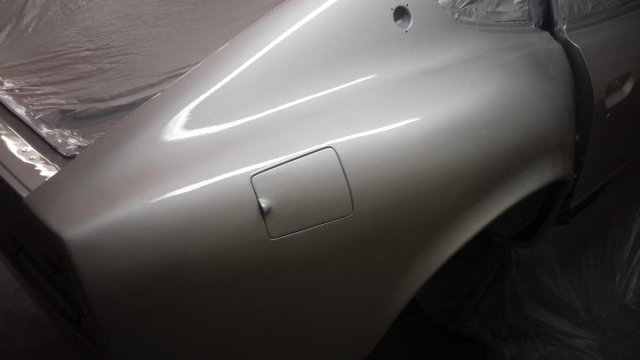 Thanks Guys. John Washington did most of the gas door work, but I had to do quite a bit of modification to get the hinge to work right, and for everything to line up. I think this was the first one that he did. Yes, I painted it myself in my garage. The third car I have done, and by no means perfect. Some orange peel needs sanding, and I got something under the clear in one spot, Won't be noticeable in the sun. The color is custom, but it is based on the original 902, but slightly brighter with more metal flake. The gap in the fender well will either be glassed in, or steel inner fenders. Haven't decided yet. The whole undercarriage is getting bedliner. One other note, the Subtle Z fenders didn't fit my car very well. They really are more "race" fenders. There is no internal reinforcement. So I bonded steel ones from a set of old stock fenders. I used the Fusor bonding adhesive for the rear quarters and anywhere else I had to bond glass to steel. This is the third project I have used it on. Expensive, but good stuff. Pete