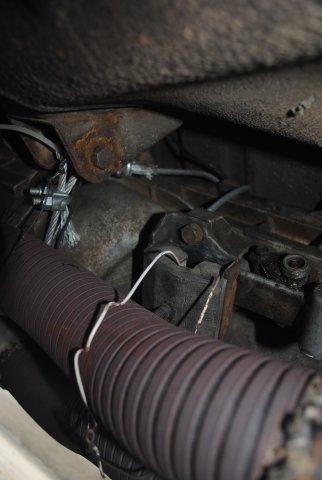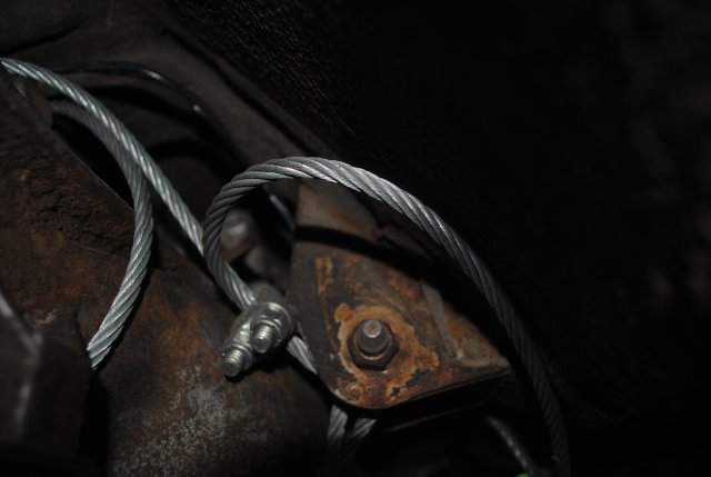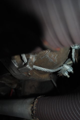 16. Ok I took some photos, but they are not very good for the exhaust is in the way and I only had time to jack it up. So, I made a diagram! The bottom mount goes from one side, through a hole on the trans, then to the other mount. If trans mounts did anything besides support the weight of the back of the motor and of the trans, then why are the mounts so flimsy? The Ron Tyler diff mount can not use a standard trans mount because it tears it in two on slight engine braking, and look at the stock mount on the T5, that has INCHES of play in it. As for the steel cables, they are pulled taught, it is slightly tricky to get the last bolt in, as you have to have the trans at the exact right height to get the bolt in, and even then you need to angle it in using the closed side of a wrench on the bolt head. There is NO play in this set up. I have kept my hand on the shifter, reved to 3k, and dumped the clutch. No movement was felt in the trans. The professional rigger that made this mount said that the cables used where strong enough to lift the entire car up by several orders of magnitude. Pros: saves weight Adjustable Easy to make, no welding required (this was the biggie, as I was just learning to weld and I did not trust myself to make a mount that would hold) Cons: Some guys can think that it is unsafe because it uses cable. It is slightly harder to line up the last bolt than with a standard trans mount. The ends of the cables are sharp. You have to toy with it to get the cables as tight as possible while setting up the mount (once set up you don't need this when dropping/reinstalling the trans), and this can be difficult if you are alone. (need someone to pull the cable tight while the other puts the clamps on) Nice time machine. I did not know about that movie till I watched Big Bang Theory. EDIT: Again, I know the welds on the exhaust are beyond terrible. It was the first thing I welded and the wirefeed welder I was using kept jamming up/feeding at an inconsistent rate. It is only there until I can afford to get a real exhaust made (and yes I should cover up the speedo cable port)