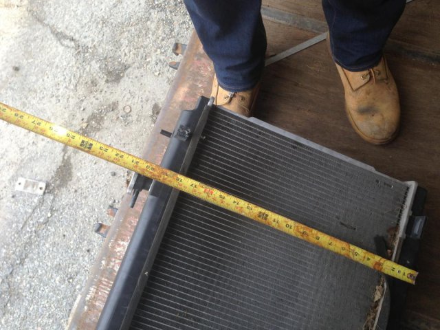 Ok so the radiator definitely doesn't fit, haha. It's narrow enough that it could have sit on top of the frame rails...if it were 4 inches shorter or V-mounted. Oh well. Will be ordering a new one soon. I'd be interested to hear the dimensions that people have run on here. I mounted the shortened shifter yesterday and it looks good. One interesting side effect of shortening the distance between the two U-joints that link the shifter to the trans is that the shifter rotates a bit more as moves through it's side to side travel than I'm used to, but it seems to work well.
