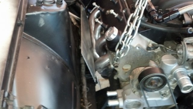 Keith: Ok thanks for the tip. I dont see why that would be an issue. Most exhaust bolts ive delt with are setup that way but Ive see a different style bolt used where the thread are cut different. I forgot the name of them but they fight you all the way off. Like constant tention bolts? I dont know what they are called. Just a thought, I dont know if it would be possible but could you do a jam nut setup? Update: I played with some spare metal I had laying around and fabbed up some heat shields. Basically to stop most of the heat from melting my harness and boiling my brake fluid. I plan to paint them and layer the inside with heat insulation. Heres a few pics of them just layed on there.