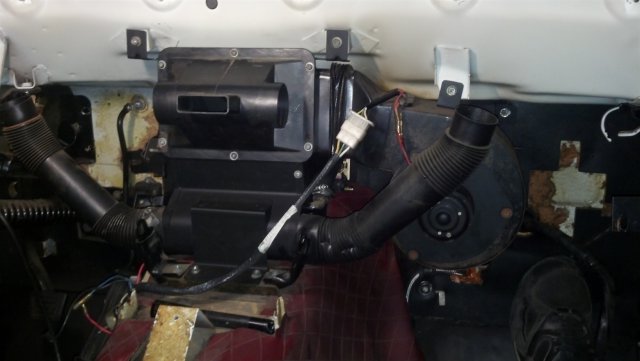 I did a lil more on the build today. I removed the heater core hoses and I found the control valve came out in pices. Also I found the main flap foam gaskets in the heater box all messed up and not attached to the flap. So I decided to pull the whole unit. The core looks good and dosent leak when I flushed it out but who knows under pressur. Im gonna have it pressure checked befor I go threw all the hassel of installing the dash. Just to remove it again. I plan on using some thin foam window seal strip to fix the flap gaskets and the other stuff in the heater box. I cleaned it all out ,it was full of leaves and painted the thing. Gonna fix and lube all the linkages to make it smooth again. It hailed here something fierce today. First rain of the year and wow it was a storm. Luckey it stopped after a few hours and is suppose to be clear for the weekend. I hope to get the front end bushings done. If I get my strut in (yes strut..I just need one) I will be able to go back togeather with my coilovers. I WANT MY HARNESS ALREADY HAHAH!! Cant wait to hear this thing run.... Question: I have some 245/75/R16's I want to run on the car. Will I need flairs to do this? Ive read no but just though Id ask. More to come.....
