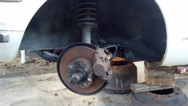 Update: Installed my heater box. Hooked up the heater hoses and installed the new shut off valve. Also installed my heater fan after cleaning it out and testing it. Ran good. I wasent able to get my roters turned as the ghetto parts store said their machine broke. I was able to measure it out as the guy working there had no idea how to use the caliper. This is after I had to use a paper clip to turn it on....They have plunty or room to be freshened up. I have a friend whose dad works at Ford and he offered to turn them for me for free. Once I get them back Ill be able to install my hubs. I did manage to get my coilovers installed. Along with the new struts. Must say im getting the excited feeling like Im getting somewhere. Mainly I need cv adaptors, radiator, fan, plug wires, brake pads, brake shoes, and my harness. My harness is being worked on now so I should have it soon. Then I can wire everything up YAY!!! hahah. From what Ive read the wiring is not hell. I just dont want to burn anything up. I also got some jack stands today