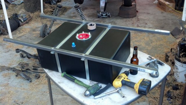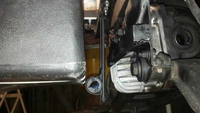 Update. Today I finished my transverse link mod. Its nothing hardcore but I belive it will work. All it is is just some thick wall box tubing with some strap welded to it as spacers. I next moved the fuel cell back about 2 inches to accomidate installing the fuel pump lower right infront of the cell. I fabbed up a bracket today but did not get a chance to finish it as it got late and i cant cut metal at 11pm hahh. Its moving along slow but shur. I also finished the wireing fot my guages in my dash. All thats waiting is to set the dash in place and wire up the senders and ignition. More on the way.