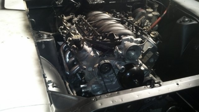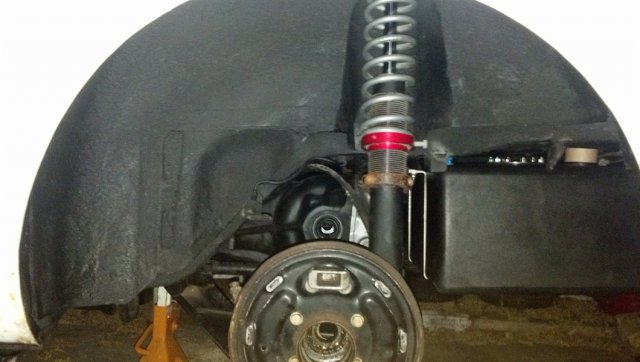 Next I proceeded to plum the fuel lines/system. I installed the rear suspention and diff. to make shur I had the right clearence. I used -8 from the sump to my pump and - 6 as the return and feed to the motor. I used a Russel prefilter and a 225lph Walbro pump. I used the C5 filter/regulator and a ton of Russel line and fittings. I also installed a bulkhead fitting into my tank for the return as I dident want to run another line on the bottom of the tank. This is where I chose to mount my pump. Heres the feed line plumbed to the pump. The sneaky little spot I decided to put the C5 filtr/regulator. Heres the return. (not secured yet). After that hurdel I decided to install the coilovers I had on the rear. Also installed some Tokico 5 ways. Moving on to the motor bay. I pressure washed it out and sanded it. I dont have any pics of it after I sanded it though. (LIKEN THEM PLATES????) After all that I had recived the JCI mounts. The install of the mounts went great! No fitment issues at all. Took about 4 hours to do everything. I then said screw it and decided to do a test fit of just the motor. That went very well. It fell right into the mounts and sat pretty! I just need to trim the alternator vent thing on the back a bit. I even was able to literally drop the shortys on. I hand no issues with the clearenc of them AT ALL. I was actually surprised. Look at that room up front! Ya theres no radiator or intake or fan but still i can stand in there haha... Heres a quick pic of my guages. I also have an Innovate AFR guage i will install later (not pictured). Thats all for now. I have more but its late and i need to get the rest of the the photos off my phone and edited.