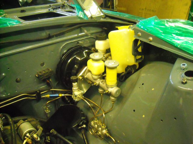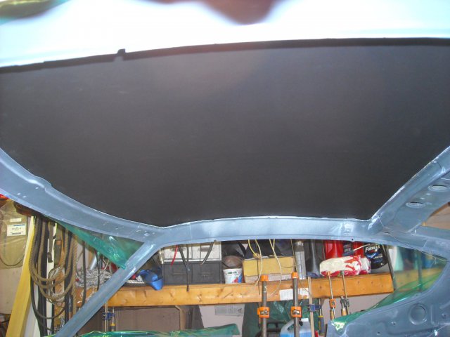 Got the headliner in and just finished the the header and side rail vinyl so will start on the windshield tomorrow. Tar mat is done and new power cable from the battery is in, also got the side glass finished, Test fitting the leather console cover, A last look at the header before it disappears into the engine bay, Gas tank, fuel pump are in, Brake and Clutch Masters are in and ready to go, Engine is almost fully assembled,