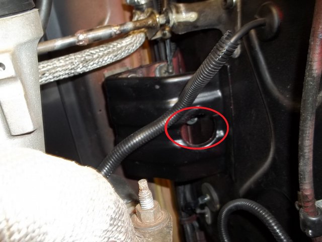 4) you need to insert the pry bar into the hole in the bottom of the hood latch bracket with the bent tip in the pry bar facing toward the drivers side