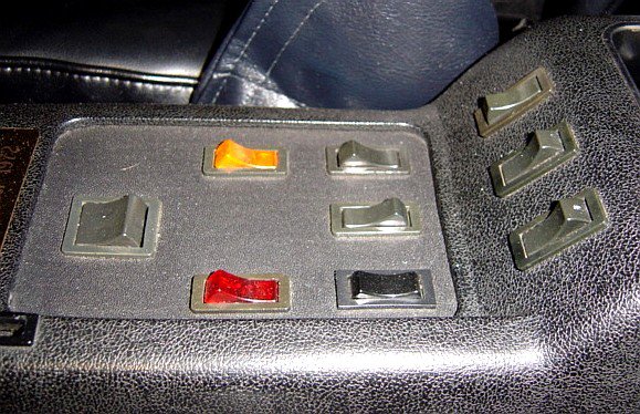 VERY clean! Good job. I put all these switches in the same location 30 years ago ... I wish I had been smart enough to think of putting them under the ashtray lid ! Of course, I also wish I had been smart enough to keep the ash tray and lid assembly too but tossed them during a move ...