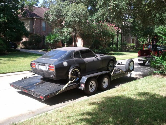 Alright it is time that I introduce my car. I have a 1978 280z 2+2. I am the technically the second owner. The original owner is my best friend from high school. His dad drove it until about 95, he got involved in a hit and run and the insurance wanted to total the car (for a damaged door and a small dent in the fender). He decided not to total it and let his son work on the car. Growing up we would alternate working at my house on my car (56 Ford) and then at his house on the Z. Here is a picture of the Z back in 2002 on our senior year of high school. The car at that time had a turbo block with flat top pistons n42 head (I think) with a camshaft that came from Nissan back in early 80’s. Also, if anyone happens to know about these camshafts let me know. What I have been told by the original owner is back in the early 80’s Nissan offered a performance camshaft that could be ordered through the dealer. He got this then had it installed but no longer has the specs for the camshaft. Here is the sad part, the reason why this car has some bad karma, in 2003 it appears that the brake line leaked and shot fluid onto the header and started a fire. Would have not been so bad if the battery did not explode as the fire was almost put out (anyone that has seen this happen knows what I am talking about). Here are some sad pictures. Now at the time I was in college at Texas Tech, I came back down to Houston and helped get the car back on the road. We ditched the FI system and went with triple carbs. The wiring was a nightmare and the car was a pain to clean up after the fire, but the car was back on the road. After that I slowly lost connection with my high school friend. About a year ago I got a BMW for my daily driver. The sound reminded me so much of the Z I decided that I needed a project car. I spent forever looking for a good car, but I was not happy with any of them. I gave up looking for a bit. I by chance got ahold of my old friend, after talking on the phone for a while I mentioned that I miss the old Z and have been looking for a good one. He jokingly put out there why not buy mine. Two months later here is what shows up. The car had been on jack stands for years. Floors are solid, under batter try is solid, spare tire is mostly solid…. the rear end, however, is NOT solid at all. He had pulled the rear suspension five years ago and had started mocking up the sub frame from an s14 on to the Z. Once he had tacked it in place he never had time to go back and finish it up. As the car was shipped the tack welds broke and the sub frame was sitting on the trailer (was not fun unloading). This is why the tires look tilted. I will use this thread to keep updates on my car and see if the bad karma is over or not. Enjoy and thanks in advance for any help.