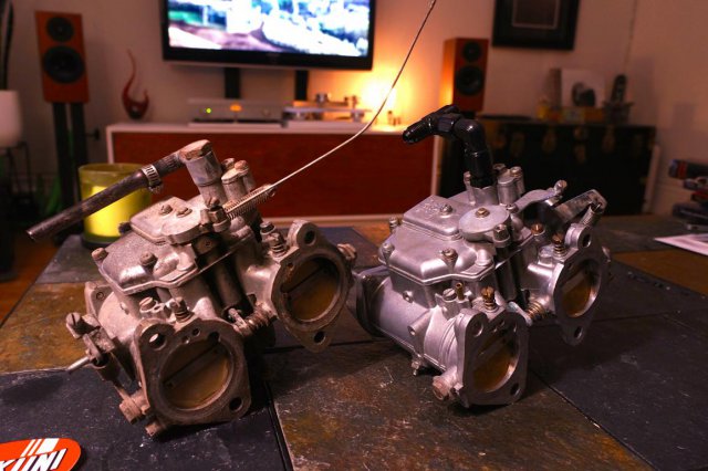^^ I just cleaned up a really crusty set of 44's I got off ebay. 'Simple Green' degreaser and water, 50/50 mix, in an ultrasonic cleaner. Set the cleaner to go for about 20 minutes or so, with the heater function on. It was pretty remarkable just how much crap came off (and out) of those carb bodies. Might be worth a shot, and it's a handy tool to have for cleaning all sorts of metal items - I got mine for about $70 at Harbor Freight. Pic of one of the carbs that hadn't been cleaned, and one that I had just finished up with.