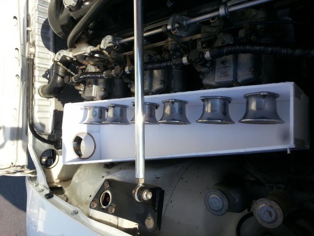 Perhaps something like this inside? baffles that direct a portion of the air to the front of each of the 3 carbs? crude, but at least it would stop the first two carbs leaving the third with nothing.