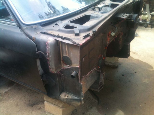 Sense I cut the front clip of the z as one complete unit I am able to use it as a base to build the custom front end. I bolted the hood back on the front, fitted the finders to get the lines as close as I could. The panels are quite flimsy at the lower rocker, so I'm going to weld some bracing to add strength and keep it frommoving around. I'm going to use bondo to to cover all the gaps, block sand the panels to get them as smooth and straight as possible. Then make a fiberglass mold of the complete front end, merging the finders, hood, light buckets and the little hatches on the side of the finder. My idea is to brace the fiberglass front end with metal skeleton, the whole thing will open as one. The plan is tohave the engine bay as bare as possible, once the front clip is opened it will reveal the engine and the front suspension. I'm wanting the wheel wells to open with the front as well so you get the full view of the engine from all angles. My only concern with this is there will be no real core support as the radiator will be bolted to theframe rails and brace bars to hold it in place. This would make a front end colision devastating to the engine. So I may concider adding a tubular bar infront of the radiator to act as a bumper to keep anything from reaching the engine. The drawing I had posted previously is the body style I am trying to create, the only other difference I'm considering is changing the lights to a more modern look. -