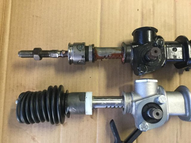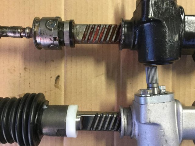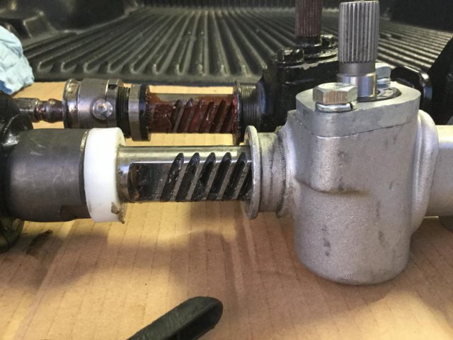 Rack installed. Feels good to me but my perspective is skewed because I have always had steering issues. So, I don't know what normal feels like, but this feels good to me. -No more feeling that the steering wheel is trying to jerk out of my hand everytime I hit any slight bump. -No more play - zero NOW, let me add this, I found an isssue while installing the new rack. Turns out where the steering shaft coupler slips onto the steering-gear box input-shaft, the bolt was not properly torqued. I put the new rack in and felt steering, it felt exactly the same as before. I thought "great all this for nothing"! So I started inspecting the components and found what appeared too be slop in the steering gear input shaft (moved side to side and up and down a bit). Further examination revealed that the coupler was loose. I thought I tightened the bolt well when I put It together but not enough to compress the coupler tight around the input shaft. I put some torque on the bolt, and probably got another full turn out of it. Maybe that was the problem all along?!?! Anyway that was the problem now and tightening the coupler bolt solved it. I did find a dry/loose inner tie rod on the old rack so, I don't regret changing it all out. SO, if you have these same symptoms I had; -Loose steering with what feels like a wear spot while going straight ahead at higher speeds -Feeling like the steering wheel is trying to break free form your grip when you hit bumps Then climb under your car and push/pull on the coupler that slips over the input shaft and be sure there is no play. If there is try to re-torque that bolt first. -