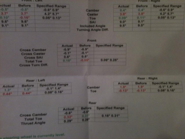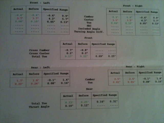Just dug out an alignment slip from July after I had the steering rack bushings installed. As you can see, much has changed.