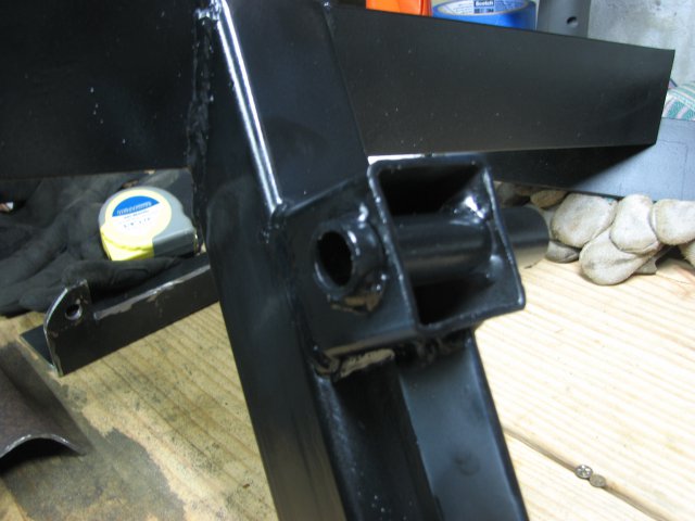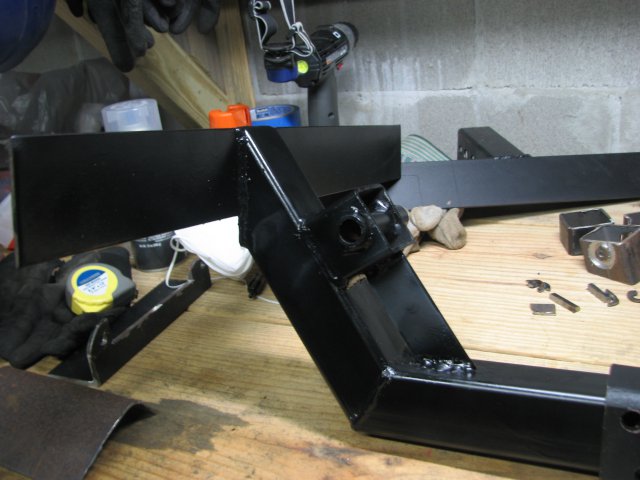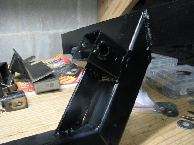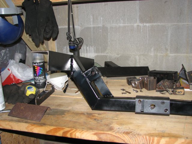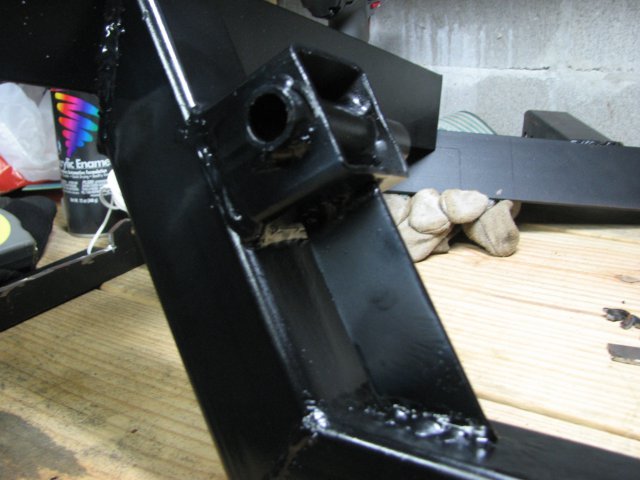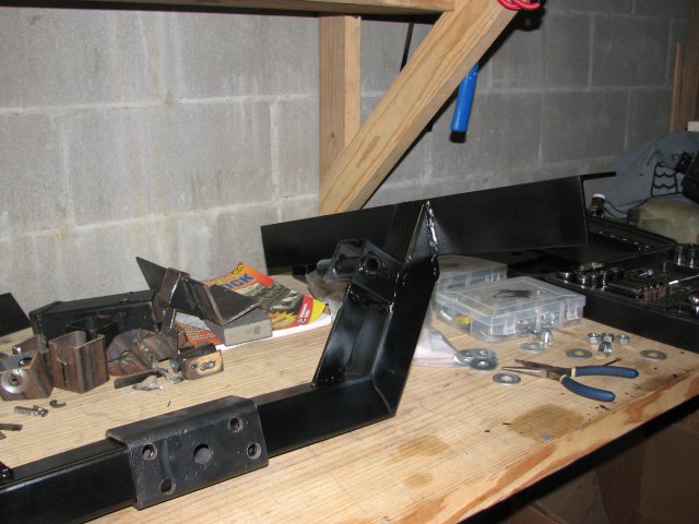 I had originally used Brian Laine's setup. His setup is awesome and I'm glad it's out there as it got me started on this whole project in the first place, however, the number of bolts that needed to be jimmied in to place was becoming kind of annoying. I was also pretty leery of the welds as they didn't look like they got very good penetration (turns out I was right after I cut the old mount for spare metal) and one of the tubes wasn't welded perfectly straight. I used er34gtt2000jp's mounts as inspiration for my current setup. It was actually pretty easy to make. Just made some square tubing out of cardboard and cut away with the motor and tranny in the car. Had the tranny bolted in the place I wanted it to be, and just cut the cardboard to fit. Once I had my cardboard cradle/mount taped up, I took it to the local steel shop and said "here, make me this with these exact dimensions". "Also, weld it here and here" and they said "cool, that'll be $50". $50 for the steel and welding, cut to to my exact measurements. Ironworks Steel in Fort Walton Beach if anyone's close by. Anyway, here you go. I think I put a little too much clearcoat last night as you can see some light spots in the pics. Also, all the pretty (read: critical) welds were done by a professional. The only welds I did were the two braces. They actually didn't turn out too bad for my first time. BTW, that middle piece slides off and makes installation a breeze.