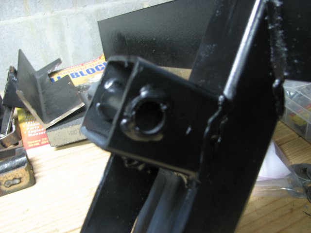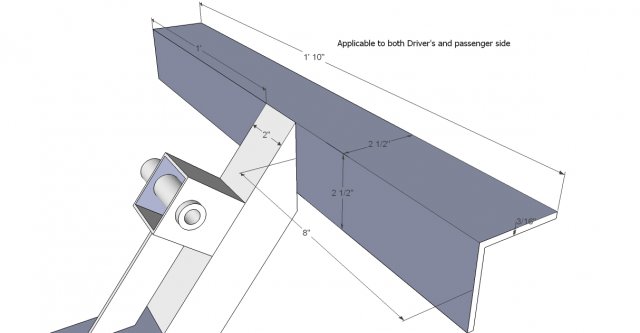 Not a problem. Hopefully it helps you (or anyone for that matter) get your swap going. If you're going to use these drawings, I would recommend that you have the angle iron and square tubing made with my dimensions. Put it in your car and see where it lines up with your motor. You might have to take a little off the 22" angle iron to line up with your motor mounts. Also, before you have the vertical square tubing (the ones with the pipe) welded to the tubing coming off the angle iron, I would check that my heights don't put your motor too high for your liking. I would recommend you get the square tubing/piping piece welded as is and leave a little extra on the bottom if you can visualize what I'm saying. That away if it's too high, you can cut some of the height off and lower the motor a little. With my motor in the car I can put my hand between the damper and the crossmember that's how high it sits. I also have my motor pushed back basically as far as it will go (the heads are less than 1" from the firewall). Anyway, here's the driver's side. Again, if you need me to take snapshots from different angles, or put in more dimensions, I'll be happy to. I'm actually about to go put the motor back in, so I'll try to post some pics of how this mount sits the motor in the bay after tonight.