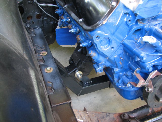 From what I've read, the 351W will fit the same. I've attached some Google SketchUp 2D jpgs for your viewing pleasure. This is the passenger side for now. I'm in the process of modeling the driver's side. Should have it up tonight. BTW, I'm using Duralast part number 2257 engine mounts. From a late 60's mustang I believe. Let me know if you can't make out any of the dimensions and I'll take some more snapshots in Google SketchUp. Or, if anyone wants a copy of the sketchup file, I'll just email it out or make it available on a share site. Edit: forgot to add the mount brace