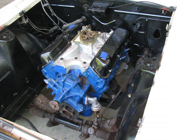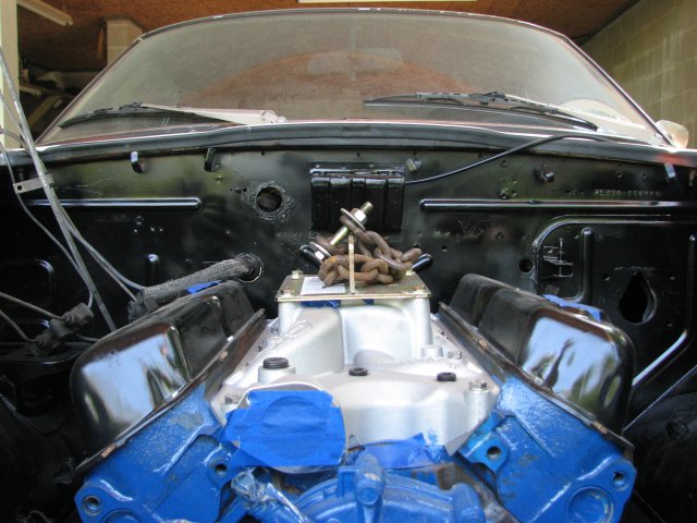 I'm going to pick up a Weiand intake and Holley 4160 carb. I got the motor as a rebuilt longblock with a nasty looking 2bl intake and carb that definitely needed upgrading. I get my JTR transmission mount tomorrow and after measuring it and the crossmember and drilling out the holes, I'll be ready to put the motor and tranny in....:mrgreen: Still need some parts (intake, carb, starter, etc.) before I'm ready to start it up...but it will be in the car. One milestone at a time. Btw, sandblasted my manifolds and valve covers today and painted both black. Put a clearcoat on the valve covers and they turned out real nice. I hope the clearcoat holds up to engine temps...I think it will.