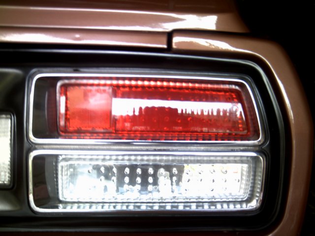 I have decided I am tired of the old lights going out all of the time and not being all that bright, so I have decided to make my own LED lights for the rear with somewhat of a twist. I am going to use the brightest LEDs I can buy for a good price and mount them to a mirror plastic plate that I will fit into my original tail light assembly. I plan on using 70 LEDs for the stop and running lamps with the running lamps only powering a few LEDs and the brake turning on all of them. The turn lights will be 60 amber LEDs. The only problem I see is trying to mold my own clear plastic lenses so I will have a more euro style look and the LEDs can be seen when not on. The backup lights will be cool white LEDs with about 12 in each.