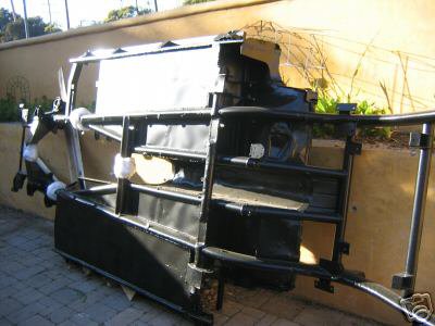 Thanks guys.. last night we stripped down the crossmember to narrow it about 9" The dash is a Simpson dash that we modified quite a bit. Basically we wrapped the gauge panel backside in foil, temporarily screwed it in place recessed to the depth we wanted it. flipped it over and layed in fiberglass to make a nice flange. then removed and tossed out the supplied gauge panel. With that done we got to work on the mounting brackets. .060 aluminum was cut and attached inside the shell with rivets then 2 part foam was mixed and poured into all areas between the shell and the aluminum. The purpose of the foam was to make the assembly feel and sound more solid so when you tap it it doesn't echo or rattle. Finally a gauge panel was cut from 1/8" aluminum.- overkill I know but we wanted it to be sturdy and able to be easily removed when we needed to work on things Here's a few pics: Notice how bad the gaps are as delivered this is where we put about 4 layers of fiberglass. I only use West Systems Epoxy resin, never the cheap stuff you get at auto parts/hardware stores after removing the panel and some rough trimming After some "tiger hair" then bondo work to clean up the opening primed after cleaning up the seams The aluminum bits on the back Test fit new gauge panel Bolted in