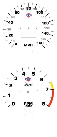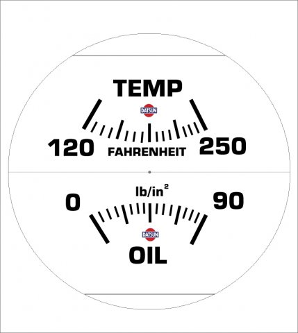 I'll take some tonight. edit: My camera needed charging...tonight pictures for sure. Overall, it looks great compared to the old cracked dash. I designed the white faces with Photoshop, nothing crazy. I added the Datsun logo to all gauges and put the word "turbo" on the RPM gauge. I used photo paper to print and a circle cutter thing to for making nicer cuts (not perfect). I did end up scratching the cap in a few places during the three times I had to install and uninstall.