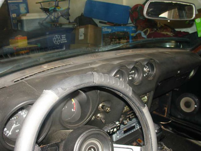 My dash was cracked pretty bad. I just cut the parts that formed an uneven surface and I didn't fill the cracks with anything. I probably could of used that product called "Great Stuff". It's a spray on foam that dries hard filling the cracks. I did paint the bottom portion of the dash with black vinyl interior paint. Although you can't really see it, it still made it look waaay better than before. If you are interested in repairing your current dash and not use a dash cap, you must follow this link: http://classiczcars.com/forums/showthread.php?t=23919&highlight=dash+repair I also used alligator clips all around once I glued the dash cap on. They are pretty cheap at harbor freight. I left it over night to dry. I used a motorsports full dash cap. It was like 89 bucks when I bought it like 11 months ago. Attached is a picture of my cracked dash.
