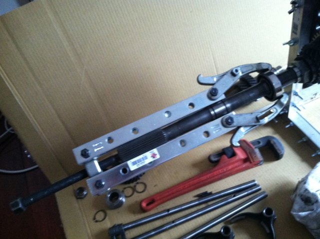 Bought 4 brackets (2 for each side), bolts and nuts to extend the arm of the gear/bearing puller tool.