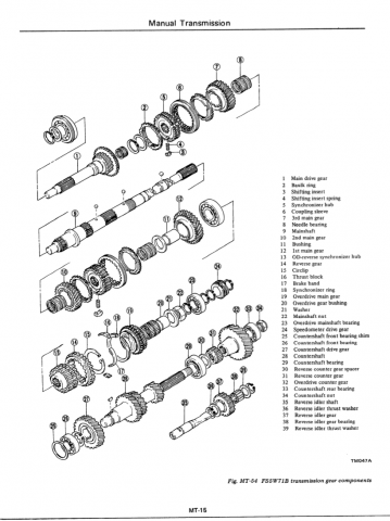 Overdrive gear bushing, reverse gear, and OD-reverse synchronizer hub removed.