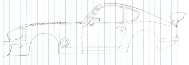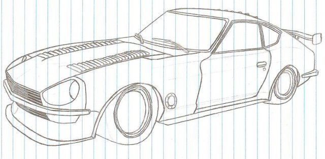 The foam sounds like a good idea, but sorry to get off this line of thought but I got a couple more drawings. Still not the technical ones but I lost the printer cartridges to my printer and can print out the pics I wanna trace for them so I'm tracing pics I already have printed out. I changed the hood and added a wing. Who thinks the wing looks to ricer-ish? I'll be doing another one today but putting my 3-peice spoiler on it to see if it looks better. The side veiw one is why I'm tracing and not doing freehand, I'm not happy with my free hand drawings. -