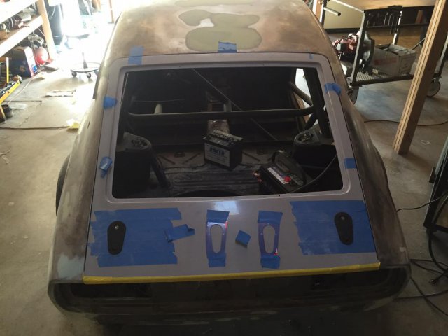 Excuse the shotty hardware...had to go through the scrap bin at the new shop. Rear window is a lexan one provided by Benchmark with hardware/straps. Overall very impressed with the quality the hatch. There was a couple of waves that required a few hours of work, but I'm sure that's to be expected with most FG parts.
