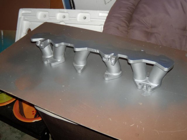 On another note, I had some time to paint the TWM intake that I plan to swap in. Paint color is "Cast Aluminum" so it didn't really change the color of the part much but I wanted to do it because painted parts are easier to maintain than bare metal. I also decided to take some measurements for the sake of documentation. The Cannon roughly measures about 145mm/5.7" long while the TWM is ~106mm/4.2". That's a 1.5" difference in length, more than I expected! This is nice because it'll open up some room between the air horns and inner fender and master cylinder. I just ordered 3/8" phenolic carb mounting blocks which will extend effective manifold length to just over 4.5".
