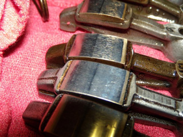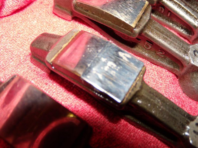 Finally took the time to pull the wiped cam out. Had to remove the hood, unbolt the engine mounts, remove the clutch fan, and jack the motor up high enough for the cam to clear the radiator if anyone cares for how it's done. On a related note, I got a $15 chain tensioner retention tool off of Amazon. Saves grief and anxiety about that thing popping out. Also, I believe I've confirmed my thoughts about why the cam was wiped. I'm sending it to Isky for them to check it out and give their thoughts but it seems pretty clear. During the rebuild, I sent 12 rocker arms out to Delta Cams for regrinding, as they've been recommended countless times and they're surprisingly cheap. When I got them back, something like 50% of them were not ground parallel when looking at the lash pad contact patch vs. the cam contact patch. Being in a hurry to put the motor together in an attempt to have the car ready for my wedding (and JCCS a few weeks later) I grabbed some used rockers I had lying around and prepped them using a belt sander/sand paper on a flat surface (as shown and recommended to me by a reputable source). I inspected the rocker arms after pulling them today and could tell which ones were the regrinds and which were home/shop-prepped since Delta sandblasts the rockers. The wear-pattern on the non-reground rockers was courser than the regrinds, so to say, indicating that those rockers/lobes were possibly wearing quicker. Also, it looked like another home-prepped rocker was starting to prematurely wear. All the rockers had a distinct delineation on their wear pad between open/closing ramps, something I don't remember seeing on stock rockers. However, do note that sanding the rockers leaves a different finish than grinding. It could be that the finish has just not been "polished" by the cam yet on those non-reground rockers. Based on the evidence, I think the lobe failure was caused by a hastily-done, improperly prepped rocker arm. It's a bit strange that it took out just the closing ramp of the cam lobe and matching rocker, so presumably the contact surface of the closing ramp section of that rocker was not prepped enough in that there was still an old wear-ridge present. I assume that the reason for the rocker being worn all the way to the edge is caused by a buildup of removed material from the cam/rocker essentially extending the rocker-cam contact area during rotation. Lesson learned: buy new rocker arms when swapping cams. If you're getting regrinds, either make sure that the shop can grind them spot on, or send in two-dozen and pick the 12 best from the lot. If you're doing your own prep, do a good job! Nifty tool Offending rocker arm Offending cam lobe, opening ramp Offending cam lobe, closing ramp Differences between reground and sanded rocker I will be sending the bad cam for analysis and a good core to Isky, and will hopefully be back on the road sooner than later!