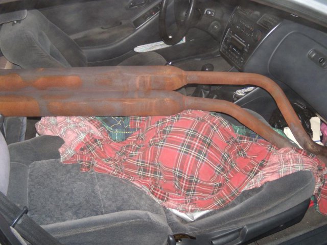 Oh, and funny story on those old-looking twice pipes. I helped a fellow Z-owner remove the intake and exhaust on his '73 in order to install a header and round-tops. He was generous enough to donate the exhaust to me, and I agreed as long as it fit in my car. The car is an '01 Accord Coupe. I've hauled two engines in the same car (on separate occasions), many sets of wheels, and countless parts. Who needs a truck?