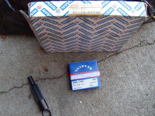 As promised, I've started working on the orange car again! The transmission is out as well as the exhaust and induction system. The throwout bearing was seized, confirming my suspicions of the noise... I'll try not to go too crazy with while-I'm-at-it, so I'll be reinstalling the tranny with a fresh clutch and related parts. I've also decided to re-do the exhaust, going back to the stock manifold from which I'll just do a single 2.5" pipe. The big header with twice pipes showed a loss in power and was too loud, thus the decision. I've done some adjustments to the carbs on the bench as well. I'm looking forward to getting this Z back on the road! This is a sight I see far too often! Trans out, release bearing removed. Some new parts I had lying around. Twice-twice pipes, I'll be selling both...