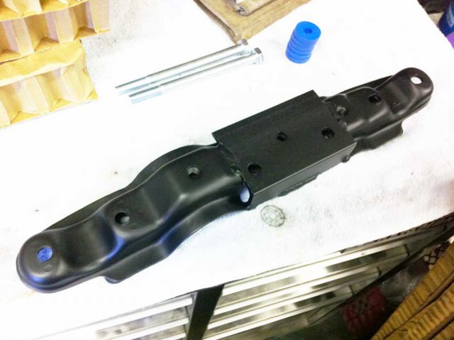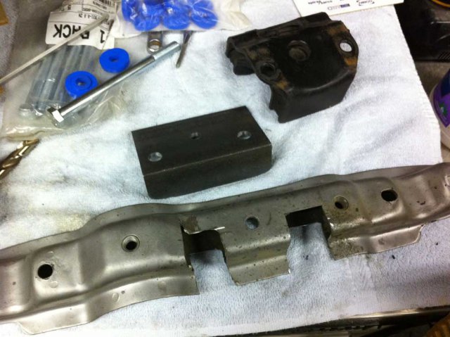 Okay here's my version of a modified differential mount. It's been a long time coming because under hard acceleration the nose of the diff hops up enough for the driveshaft to graze the tunnel and kept getting worse and worse as the rubber in the diff mount started to shear. Only time will tell how well this works, but so far I'm happy with it. Basically I didn't want a solid mount because I've heard it would be unbearably noisy, and I didn't care for some of the other ideas out there in terms of how much they cost/how much effort goes into them. My design (I don't know if it's been done before or not but I haven't seen it) is pretty simple -- just bolt the diff directly to the crossmember, but isolate it with rubber spacers. The only complication is that the bolts don't line up with the center of the crossmember, so this has to be modified a little (easy enough to just hack away at it). I cut out parts of the crossmember that would interfere with where the bolts go through (very quick and dirty) and welded on some angle iron to make a wider mounting surface that the nose of the diff can actually sit on. Using the old rubber mount for reference, I drilled a locating hole in the angle iron and then measured out for the mounting holes and drilled those before welding it together. The entire process only took a few hours and I finished it all in one day. However, today I took it back off to cut off the excess of the angle iron that was hanging over because it's really close to the driveshaft (initially I just left it because I thought there would be plenty of clearance), so the end result isn't exactly like the picture, but you get the idea. Also, the bolts I ordered were a bit too long so I had to use some extra washers to keep the nuts on the threaded portion, but I've ordered shorter ones and intend to replace them next time around, as well has another set of the rubber spacers that are a little harder in case these don't last. I can hear a little more noise than before but it's completely bearable even with no music playing. All I'm really hearing is a little clunk when I shift (there's quite a bit of gear lash in this old diff) as well as the throwout bearing which I knew has been slowly going bad over the last year (I could head it before but now for whatever reason the noise is transmitting into the cabin a little more). The important thing is that now I can put the pedal to the metal no problem, and the whole thing only cost about $20 in hardware. If my design proves itself any anyone else is interested, I have extra hardware and could make more to sell at a reasonable rate (likely an improved design on this working prototype), I'd just have to get my hands on some crossmembers. -
