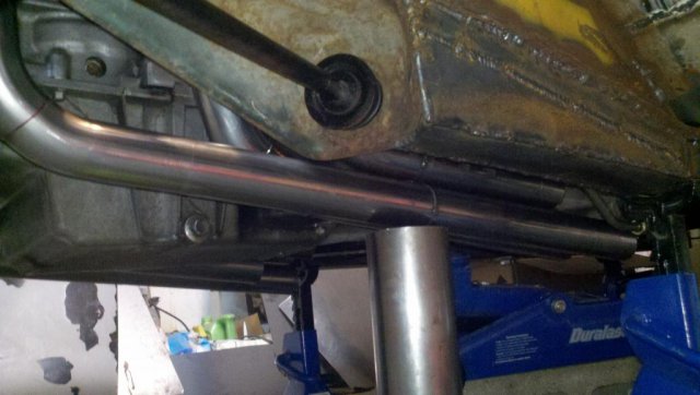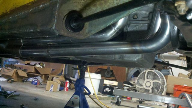 Have you seen the Magnaflow X pipe muffler? I'm kind of interested in it myself. I would think you could add two small mufflers or resonators out back and still have a reasonable volume level. Headers look great! I hope to tackle my own pretty soon.
