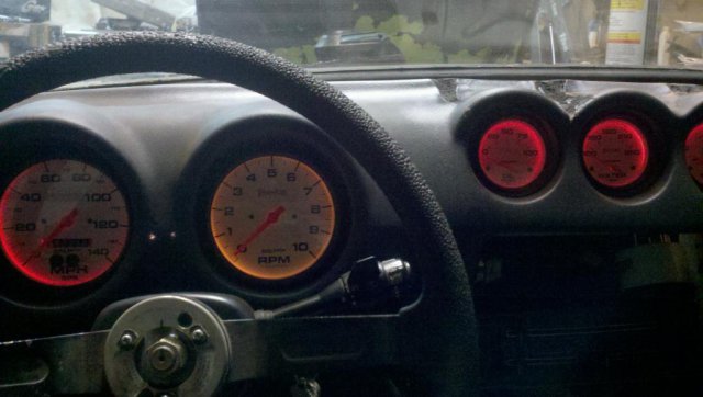 Autometer Phantom 2s in 5" and 2 5/8". Oil pressure, water temp and fuel level in he center pods and the volt gauge in the drivers side vent. I'm glad I pulled the dash to put them in!