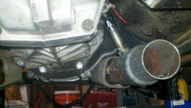 Here's a pic Dom. I put them in as high as I could without hitting the transmission I will put the spare bungs in a couple inches back. I extended the drivers side sensor wires to run across the valve cover under the fuel injection harness and down the back of the block. The passenger side breaks off the harness right at the firewall and down to the connection, safe and sound