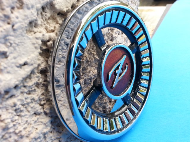 While this not a "Z" emblem, I am hoping that someone here can help identify which years and models that this emblem was used on. Have searched google, ebay, etc. trying to figure this out, to no avail. Anyone??? Thanks for your help. Mike P.S. the emblem measures approx. 3 inches tall by 1 1/2 inches wide, and has two mounting posts on the rear, leading me to believe that it probably is either a hood emblem, a trunk emblem, or a c-pillar emblem. Any thoughts?