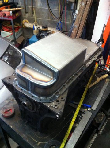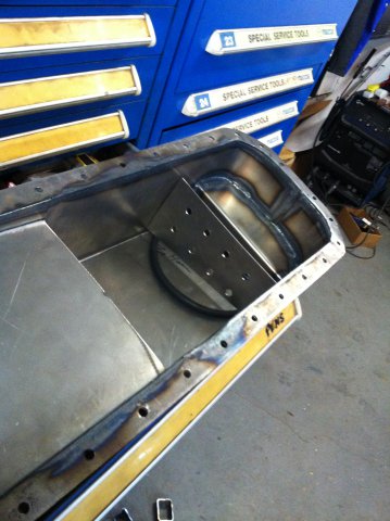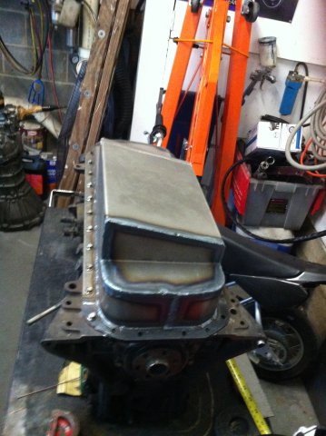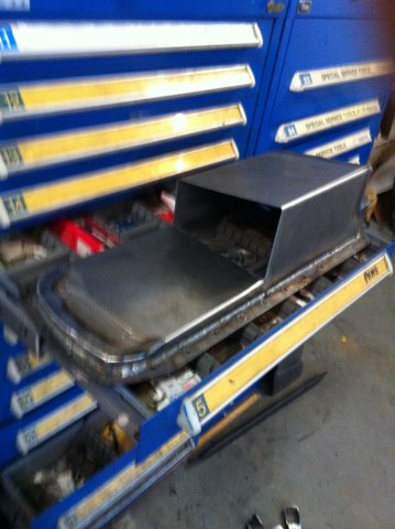 Here is a couple pans I built Saturday. The first one is Wedge's pan for his rb26. It's not done yet, I'm waiting for some oil pickups to be delivered.I still have alot of metal work to do. Wedge wants a external dip stick also. I was going to do more on saturday but BEER got in the way. (it's really hard to tig with a beer buz LOL).