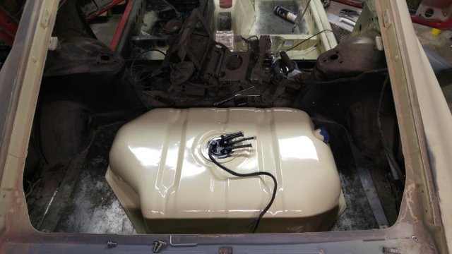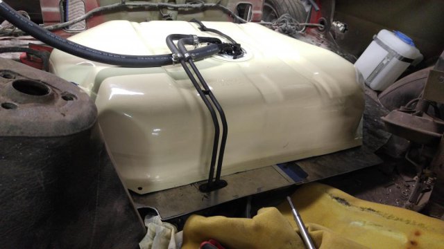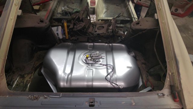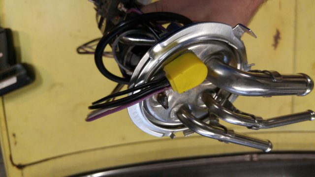 Fuel, Part 2 Having a blank slate for fuel, I initially went way overkill and got my hands on a walbro 255lph inline pump as a transfer pump from a cell, to a 1.5 liter surge tank, to a walbro 320LPH inline to feed the engine. It would've worked great but added a lot of complexity in both plumbing and wiring. Decided to simplify. The goal was to find readily available parts for serviceability, not break the bank, and have something that looked more OE rather than have a cell with bright shiny AN fittings and lines. So after a crazy amount of time (over 50 hours total) spent on Jegs, Summit, Rock Auto, Pirate 4x4 (AWESOME forum btw) I found my answers. The scary part of all this, was that this was all going to work hypothetically. I was trusting dimensions supplied by product detail pages and a lot of eyeballing. The tank and sender from a 1985 Chevy Blazer 4 cylinder, 13 gallon variant. This is internally baffled with roughly a 1 gallon volume baffle. I welded the stock charcoal vapor return fitting shut, leaving a 3/8" output, a 5/16" return, and a 5/8" filler vent intact. It's sender is a very standard 0-90ohm unit. It was chosen based on dimensions and shape. It also allows me TONS of clearance underneath it to run a center exit exhaust and undertray. The sender's float arm mount needed bent roughly 40* inward to allow the massive 320lph pump to squeeze down into the tank. The tank has a flange on it's outside edge that runs the whole way around. This will be how I mount it into the floor. No straps and no crazy frame needing built. The pump and filter sock are for a 1998 Infiniti Q45, Airtex (aka Walbro's parent company) rated at 320LPH. Not much needs to be said here other than it is massive, quiet, and easy to get at nearly any parts store. -