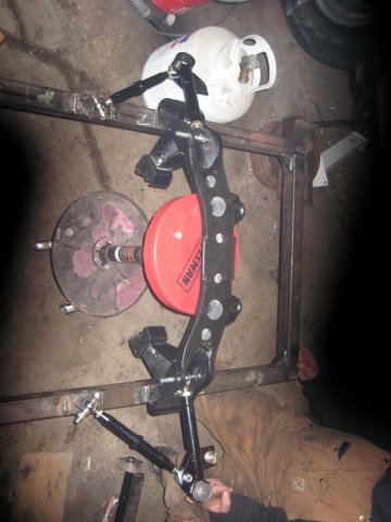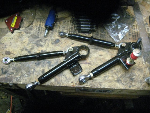 How much force do you guys think I will be dealing with in regards to the twisting of the control arm from the sway bar? This is some seat-o-the pants hillbilly physics talking here, but I figure that a 2000lb car cornering at 1G putting sway bar torque motion through a 1 inch effective "lever" (sway bar bracket) doesn't add up to enough to harm the radius rod by twisting it. Or are you guys thinking that not mounting the bar in the middle of the control arm will load the suspension in some adverse manner, causing the car to be a handful when turning? Thanks again for the input. doublexl, thanks for the pictures. Interesting design. Definitely interested in your progress, its a cool project. -