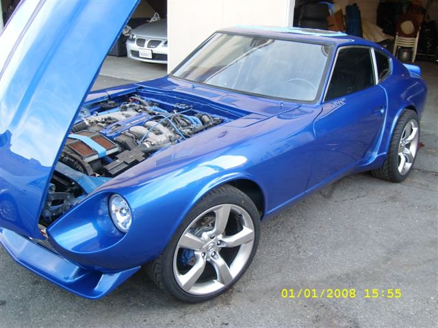 Anyway this is my project 240z it's on the road now and runs great, I swapped the engine, trans,dash,seats,suspention, antilock brakes, taillights, a/c from my crashed 93 convertible. Unfortunantly it's @ my home in Ca. and I'm stuck working in Iowa for awhile.
