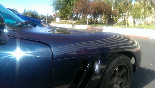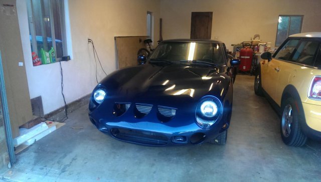 I took the body work as far as I could and dropped it off for paint six weeks ago. The plan was four weeks in the shop while I was travelling for work, but the schedule slipped. I hope to pick it up by the end of this week. The shop agreed to create new rocker panels to blend the front and rear fenders, and to clean up my tail light pods. They also will be etching and painting black all the polished trim and door handles. I negotiated colors with the missus and we agreed on Ferrari Pozzi Blue. I wanted to downplay the Ferrari connection, but that is one sweet color. Near black in low light and shifting shades of blue in sunlight, which should look good with blacked out trim. If the shop does not finish up as planned I will be al least doing a progress inspection and grabbing photos at that time.