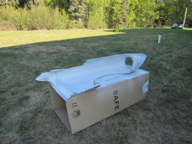 When I bought the type 2 air-dam and put it on for a test fit, I did not like how far past the hood it went. So I cut approximately 3inches off the sides and shave the top to recess the air dam a little farther. This is how it turned out.