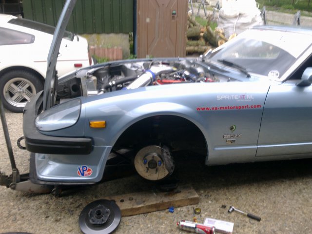 My zxr ZXR -Full Cage. -5 lug swap. -Spax coil overs. -poly bushing. -MSA sway bars. -Adjustable end links. -Z32 tt Brake disk and R33 skyline calipers, EBC Blue stuff pads ( for now i hate them but it was what they had for now), Motul brake oil, steel lines. -305 SBC with a mild cam alum heads Nos kit prepared ( not wired yet) running on MsS. -T5 gearbox with 'stage 2' iroc z clutch and hurst shifter. -3.36 OBX hlsd with z31 turbo axles. -Diff cooler. -Aluminum radiator. -2x 2,5 Stainles pipes into 3" straigt and dynomax muffler. -Sparco Seat and crow 5 point harness. -Autometer tach with shift light in OEM spot, 260KMH speedo, HKS oil temp, exhaust temp en boost (not in use now) meter, ebay special water temp, oil pressure, fuel pressure, auto meter volt and air to fuel meter. To do .. all the lil ods and ends etc etc .. then in a year orso a 406 For some reason i only have shitty pictures of it (here fitting the r33 calipers ) ... But hopefully after this weekend some action shots !! as ill compete in the Time Attack. http://timeattack.nl/nl/text/show/879/208__frank_poll.html http://en.japansautosportfestival.nl/en/home/show/391 Here a small vid http://forums.hybridz.org/index.php/videos/view-43-280zxr-v8/