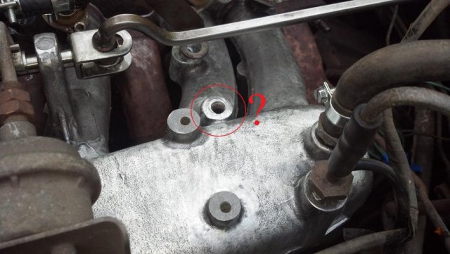 Hello gents! After replacing the intake/exhaust manifold gasket, sensors, thermostat housing, wiring, injector harness and generally cleaning up and organizing the entire fuel rail area, I am finally at the point where I can start up my 77 280z again. The problem is that there is an open threaded hole on the intake manifold and I can not figure out what went there. There doesnt seem to be anything left that is not plugged in so I am thinking that it may have been plugged but would like to confirm before I try and start it. I have viewed numerous photos online and in the FSM and I cannot figure out what this thing is/was for. Attached is a photo of the hole, circled in red...