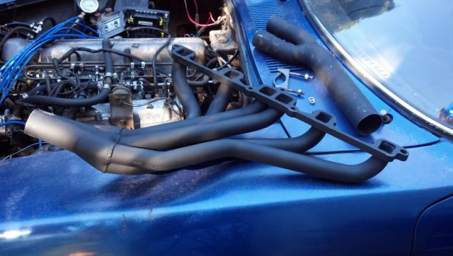 The issue is that I already removed the intake and exhaust manifold, replaced all the studs, all the hardware, cleaned up everything on the intake, replaced all the gaskets and bolted it all back on. When I took the exhaust manifold off to try and solve some issues, I found the SS hardware was all warped - mostly the washers were being sucked through the holes on the manifold and were starting to look like a shallow funnel. I picked up case hardened washers and extra thick case hardened nuts with zinc plating from mcmaster, they say they are hardened to grade 8 standards so they should stand up to the pressure and heat. Hopefully my engine will run a little nicer now. Anyways, headers came in extremely early. Delivery date was Wednesday next week at the earliest, got them Saturday around noon! I was extremely surprised as they had only just left california on Wednesday going Ground. They look to be of good quality, especially for the price. I bolted them on and noticed that the flange was not straight - it had a slight bough in the middle that was creating bout a half inch gap between the head and the flange on one side. I put some of the nuts on the studs and gently tightened them down and the flange straightened out easily. However, I now cannot fit the Y-pipe onto the end of the headers. Looks like the warp in the flange was in between the two 3-pipe groups on the flange. Now that I have it on the car and I can see how to run the piping, I decided to run just the single 2.5" pip out the side of the car. Dual side pipes would be awesome, but I dont think the stock NA motor is really going to make use of it anyways, the new pipe is already much larger than the factory piping. I will try and make the Y-pipe modular with a flange connection so that I can switch to dual pipes in the future if I really want to. This setup should be much more simple, one muffler, 5ft of straight pipe, and one 90 degree angle. Toss a couple hangars on it and its done. No bending, only a few welds to make, should be super simple. What do you guys think of powder coating the entire exhaust system? Will the powder coat stand up to the heat put out by the headers? A friend of mine recommended a guy to me who does good and reasonably priced work. He claims the entire exhaust system should only cost maybe 40$.