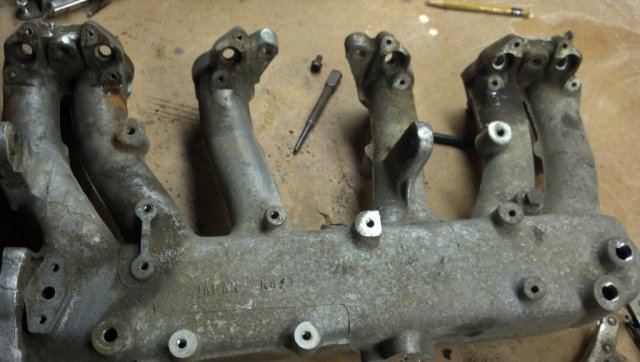 While I had the thermostat housing off, I decided to just dive in and do some more work on the manifolds, rail, injectors etc. I hate having a dirty/grimy/rusty looking engine bay so I pulled the pieces of the fuel rail apart, yanked the intake manifold and exhaust manifold and basically ripped apart everything attached to the engine on that side. I cleaned up almost everything - between media blasting and polishing with stainless steel brushes and sand paper, I think it looks much better than it did before - its not as clean as I wanted it to be, but it will have to do for now. At least I dont hate opening my hood anymore. Many of the holes/threads for the 8mm studs were severely stripped out, and I could not get my new coated studs to thread into some of them so, I broke out the helicoil kit and redid just about all of them.