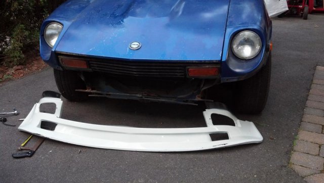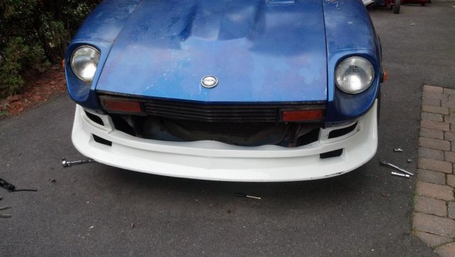 Here is the last update so far. I got a good deal on a front air dam from a gentleman on here. I have always liked the look of these air dams so I could not pass it up (even though the vehicle needs mechanical work more than visual effects). It took several hours and many broken bolts but i finally got the old front valance off and test fit the new air dam. I just has the bolts on the ends holding it on but looks like it fits pretty well.
