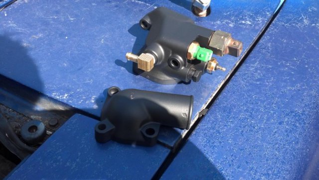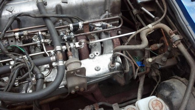 Hey folks. This is going to be my log thread of all the work I am doing on my 77 280z. The S30 is my dream car, I searched for years before I found one that I could restore and I finally ended up with this gem. It was a metallic sky blue originally I believe (the old paint scheme can still be seen on the frame rails and some areas underneath the car). It was repainted a pepsi cola sort of blue. The vehicle did not run when i purchased it for 1400$ up in MA and it has some rust issues. The biggest problem is the area under the battery tray...or where the tray was supposed to be. It seems as though a battery had cracked and dumped acid all over the area which ate everything, including a hole in the body that is just large enough for the battery to fall through. For the time being, I tack welded a metal support for the battery to sit on. I will do almost all the work on this vehicle, the delicate body work will be done with the assistance of my very good friend who is a Baron Tech graduate in Auto Body. The first steps were to get it running. I dropped the gas tank and cleaned it and undercoated the entire area while it was off. I also unbolted the rear bumper and mounts. I replaced all the fuel lines going from the tank to the pump and from the pump to the filter. Also repaired the connections for the pump as the wires were horribly frayed apart. I also put a clear filter inline from the tank to the pump and replaced the pump and the fuel filter. Next, I did some general maintenance - oil change, filter, coolant flush, brake fluid, spark plugs, cap, rotor etc etc. We got her running after all that and I got to take my first drive down the street in it. I moved on to some more complicated stuff - firstly, the fuse box in the cabin and the fusible links. All the links had been burned up, some were replaced with incorrect size wires, the link holders were burned and had no covers. I decided to convert it to Maxi Blade fuses. After that, I pulled out a ton of useless wiring for kill switches - old crap sound equipment, etc etc. The wiring was so messy and there was so much that did not belong, that i decided to rip out the entire sound system and discard it. I pulled out about 100ft of wire that was supplying eight 10w speakers. Moving on from there, I was trying to solve the rough operation of the engine. I suspected that the coolant temp sensor might have been bad and they are cheap enough to replace. Also - the thermal transmitter was faulty as the gauge did not function properly. When I tried to unbolt the temp sensor, the thermostat housing broke in the area right around the sensors. I purchased a used housing from a fella on here, polished it, painted it, picked up all new sensors and plugs and gaskets for it, helicoiled the holes in the head and put it back in with shiny new stainless hardware.